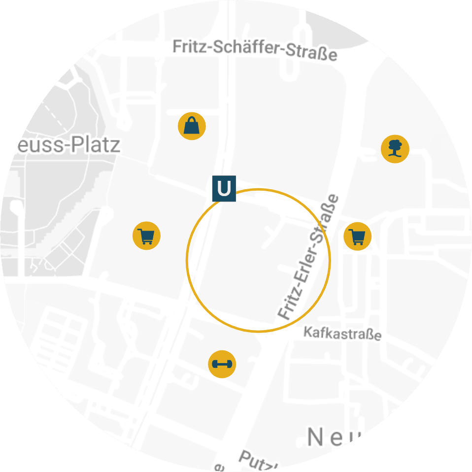 Doppelter Luxus! Obwohl dein Apartment eine Einbauküche mit Spülmaschine bietet, kannst du natürlich auch auf die zahlreichen Gastronomie Angebote zurückgreifen. Direkt in unserem Quartier oder gegenüber im Shoppingcenter PEP! Auch für Freizeitunterhaltung ist mit dem Ostpark, dem Michaelibad oder einem Skatepark gesorgt. Immer noch nicht überzeugt? Dann führt dich die U-Bahn auf direktem Wege vom Quartier in die Münchner Innenstadt.